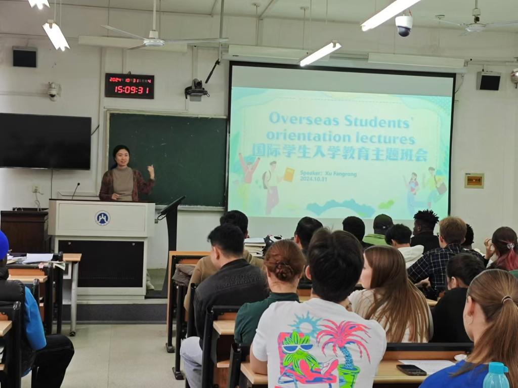 近日,国际教育学院组织开展了一系列来华留学生入学教育主题活动,旨在帮助2024级来华留学生新生尽快适应在中国的学习生活。本次入学教育涵盖中国法律法规、校规校纪、安全教育、学业修读辅导、宿舍安全知识培训、心理健康辅导等多个模块。有来自俄罗斯、尼日利亚、利比里亚等21个国家的全体来华留学生新生参加活动。