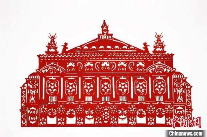受在法国留学经历的启发,青年剪纸手艺人逄思佳将巴黎歌剧院、巴黎圣叙尔皮斯教堂制作成剪纸。“我在勾勒出歌剧院的建筑轮廓后,将中国京剧戏曲‘生旦净丑’的元素融入其中,在法式浪漫中增添东方韵味,展现不一样的美。”她说。