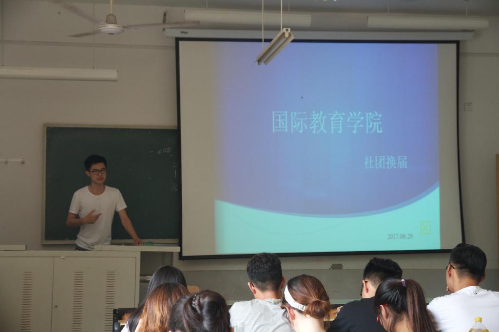 2017年6月29日下午,国际教育学院社团换届选举大会在我校舜耕校区1206教室顺利召开。参与本次大会的有学生会主席杨馥瑞、副主席马征、社团部部长李雪岩、社团部副部长、各社团社长、副社长以及参与竞选的16级社团成员。本次大会由社团部部长李雪岩主持。