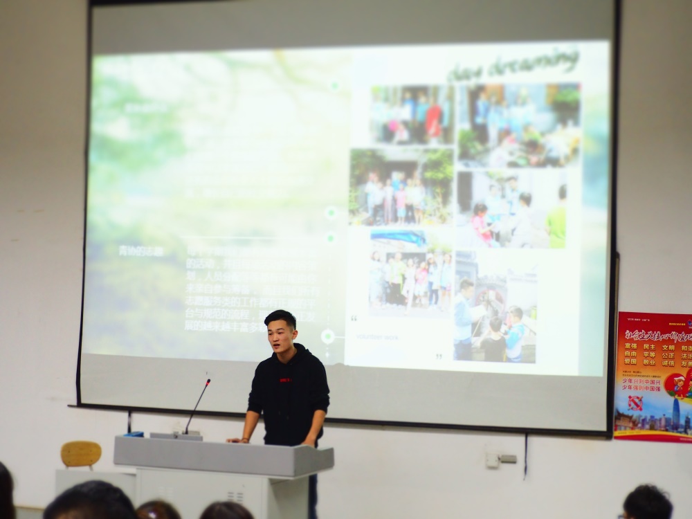为了丰富新生的大学课余生活,各社团负责人把各自的社团用精简的形式展现给了大家。首先进行宣讲的是英语角,社员们不仅可以在公共场合通过英语演讲来提升自己的英语水平、锻炼自己的胆量,也可以通过参加感恩节等西方传统节日来感受异域文化的魅力。接下来是乒羽社,加入这个大家庭可以在通过运动愉悦身心的同时结交很多志同道合的好友,从而一起进步。随后书友社向同学们展示了读书百遍、以书为伴的大学生活,雨果曾言:“音乐是思考着的声音。”接下来,音乐社社长的单秀娟同学向同学们介绍了关于音乐社的种种,若你热爱音乐,喜欢聆听的感觉,何不加入他们,一起来感受音乐流淌过心灵的瞬间。有劲歌自然有热舞,以爵士和街舞为主的StDC舞社展示了独属于年轻人的活力与魅力。紧接着是话剧社团,人生只有一次,可话剧可以不断演绎,如果你想体验不同的人生,那么请加入他们,一起来演绎不一样的精彩。“高端大气上档次”恐怕是形容青鸟微影视协会的不二选择,从专业拍摄到后期精美剪辑,他们不断努力记录着同学们生活的点点滴滴。而后“辩是辩非,论古论今”的辩协,打破了我们以往对辩论的认识,有趣的辩题拉近了辩论与我们的距离。最后是致力于公益活动的青年志愿者协会,同学们可以通过进行志愿活动来体会到人生的价值。