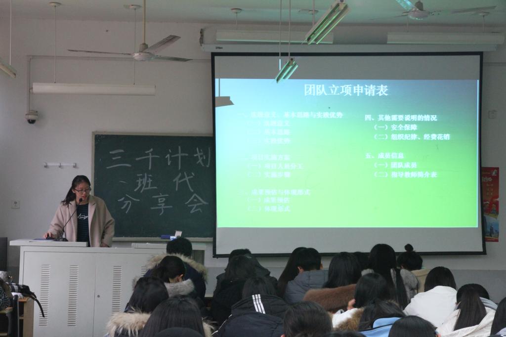 为了使同学们对“三千计划”有一个全面的了解,更好的参与到社会实践中去,12月14日下午,国际教育学院在舜耕校区1206教室举行三千计划班代分享会。本次会议由学生会社会实践部长杜沂霏主持。