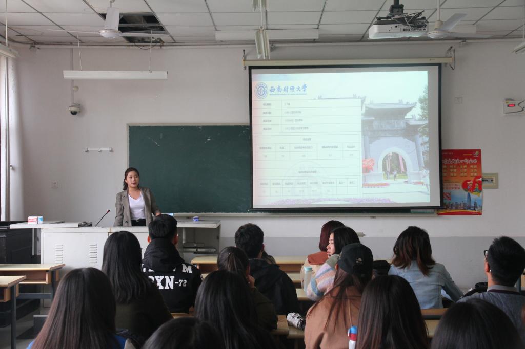 为了帮助低年级同学做好未来规划,对国内考研、出国读研等选择有明确的了解,我院于4月23日下午在舜耕校区举办了2018届毕业生经验交流会之考研出国专题。学院邀请了2014级中加经济学专业王子秦、李肖璇、孙路、吴琪、张慧、蒋立城等六位优秀毕业生进行经验交流和分享。