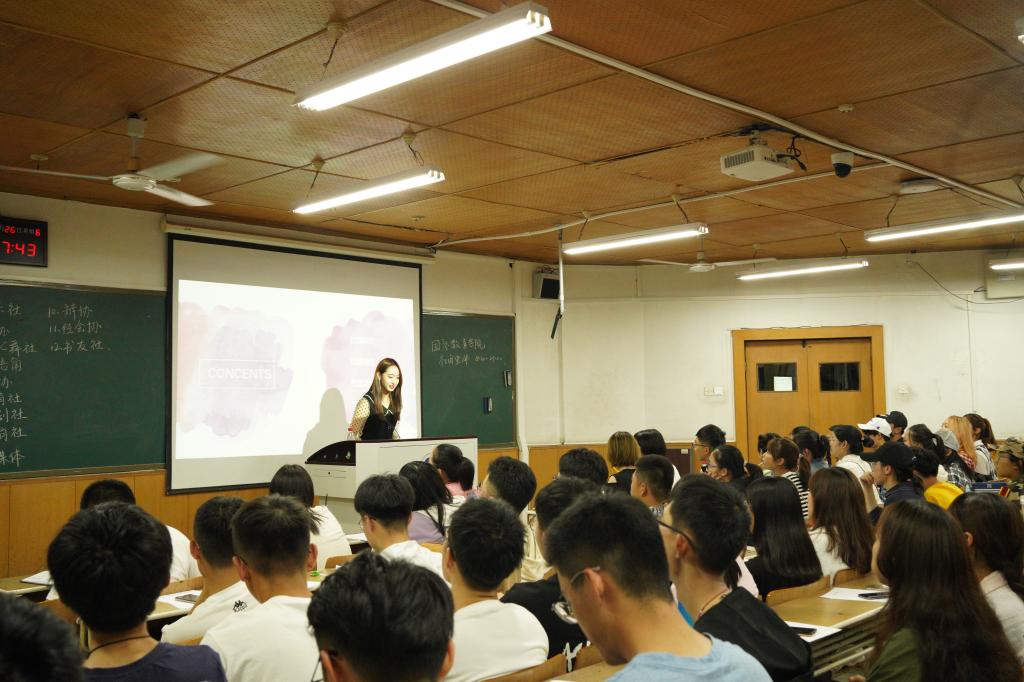各社团为本次宣讲做了十分充足的准备,从社团宗旨、未来展望、社团活动及纳新要求等多方面对社团进行了详尽的介绍。青鸟影协制作的精美视频宣传片,音乐社社员带来的歌曲《你的答案》,汉韵社社员身着汉服展示的古风舞蹈,吸引了诸多同学的目光;辩协出色的口才,酷动体育社青春飞扬的运动视频,新媒体中心为学院工作的优秀成果,赢来了同学们的阵阵掌声。此外,还有英语角、书友社、经济与会计协会等与学生的学习生活密切相关的各类社团,用精彩绝伦的演讲点燃了新生们的激情。