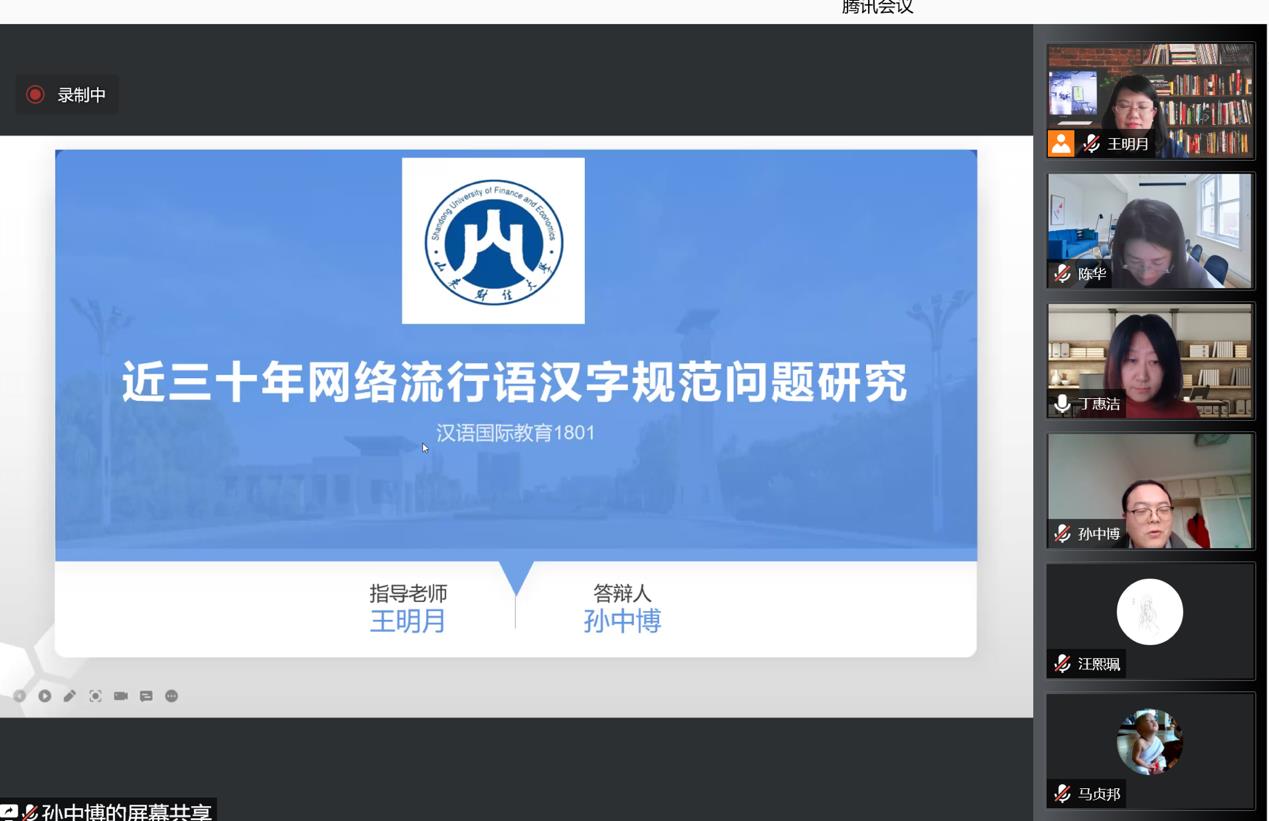汉语国际教育专业2018级本科生毕业论文线上开题答辩于2021年1月19日下午1点在腾讯会议顺利举行。本次毕业论文开题答辩会共分为四组同时进行,由学院12位毕业论文指导教师担任答辩评委,2018级全体本科生参与答辩。